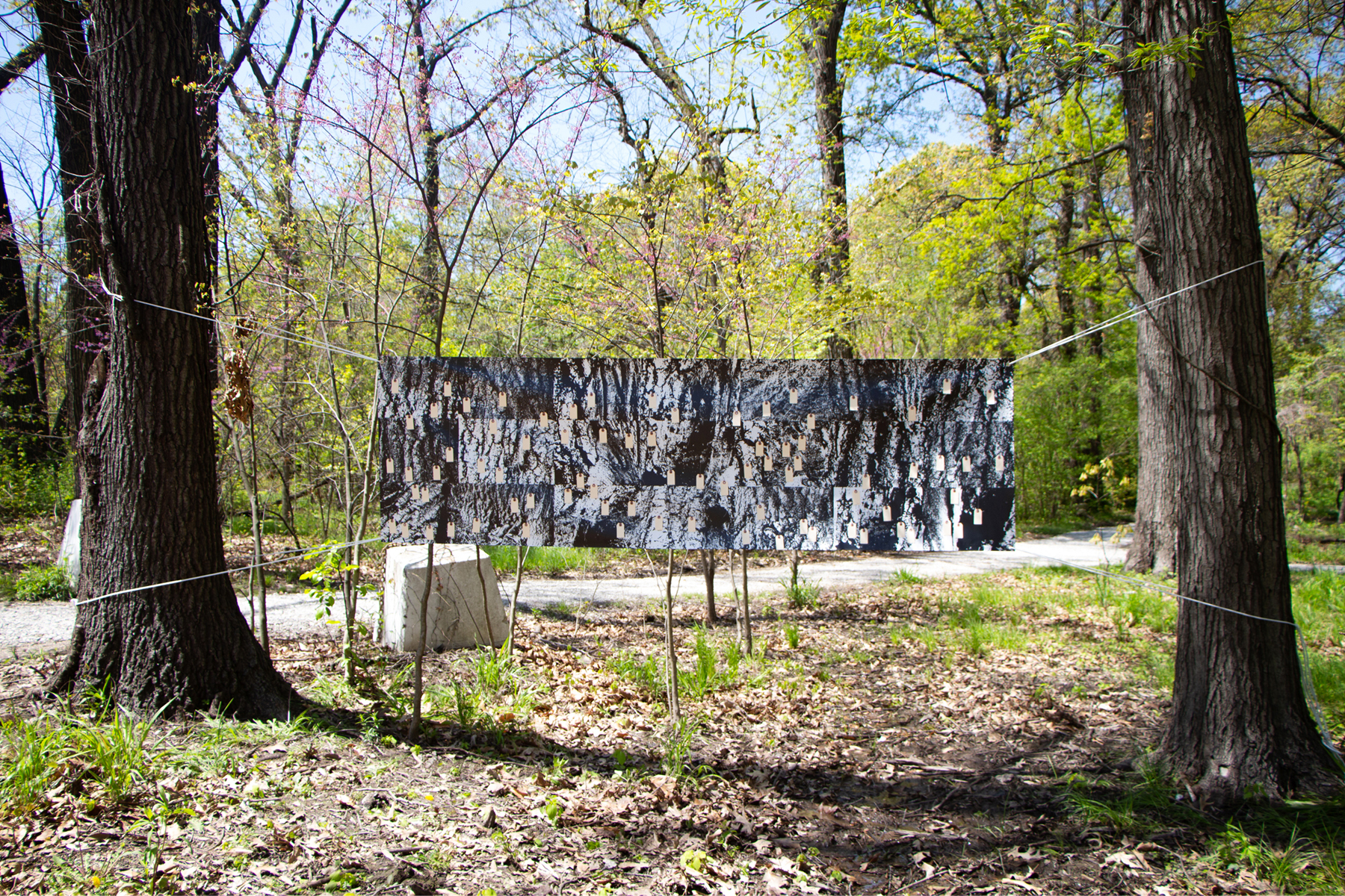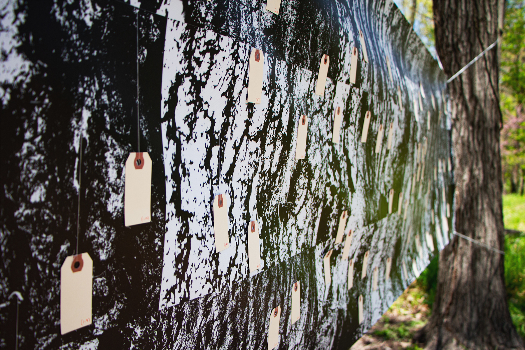 Secrets written on paper tags are attached to a banner. Answer a question in exchange for something I’ve never told anyone before. Take a secret as a keepsake. Reciprocity is key.